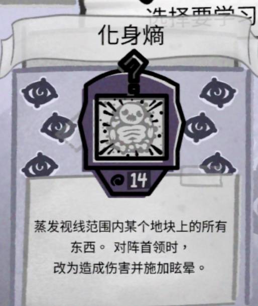 随后我们解锁了【全知】,可以不用视野也能蒸发或是引发疯狂,这样我们可以留下宝贵的移动力进行走位,另一个被动【招手】给我们造成了不小的困扰我们必须把它换掉!