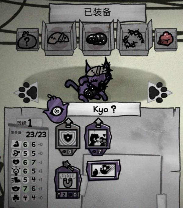 我们带了下面五个道具,全是没有稀有等级的道具,但是效果偏偏都挺好,有的甚至堪比红色道具,【皮帽】增加一些坦度,【带刺面具】非常厉害,+1荆棘和+1伤害可以帮助我们更快的清掉小怪,【骨髓】是单猫通关的红色道具,可以没有战损的进入下一场,这对没什么回血手段的灵能者而言只能说是天赐之福了!如果打boss还可以换成其他消耗品,【杂物袋】前期能刷一些硬币和食物都很不错,毕竟第一个商店就要吃一个糖果,至于【水蛭妈妈】就没那么强了,但是可以帮助我们生成一些分担伤害和技能的小东西,准备阶段做了这么多我们要准备出门了。