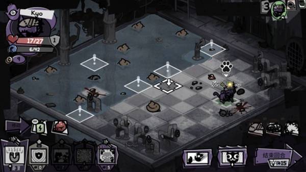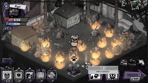 Kyo非常不幸,在着火的天气遇见了激进鼠鼠,只要激进鼠鼠把炸弹扔到带火的地格上就会直接爆炸对kyo造成伤害,由于刚刚买了糖果导致没钱买露西上架的回血眼球,我们只能硬打了