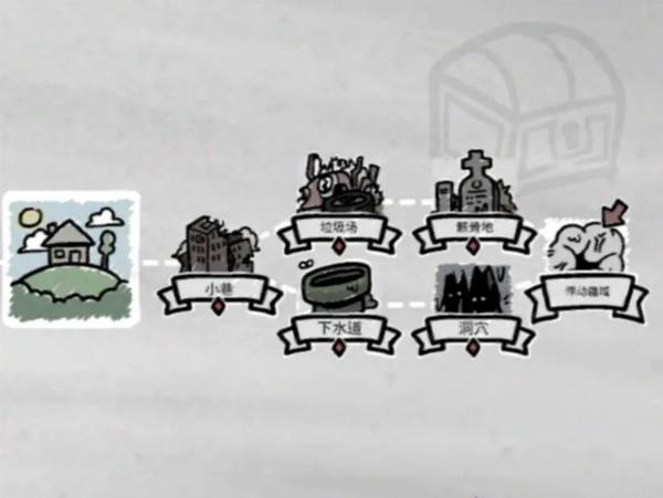 开局解锁小巷,第一次通关小巷解锁下水道,通关下水道会解锁洞穴。打过洞穴解锁困难路线,通关小巷困难路线解锁小巷另一条路线垃圾场,然后从小巷进入垃圾场通过会解锁骸骨地,再通关骸骨地后第一幕就基本入门了。总之就是跟着指引走,哪里亮了去哪里。另外建议大家选择困难路线,有些关卡只有打困难路线才会解锁,而且奖励比较多。