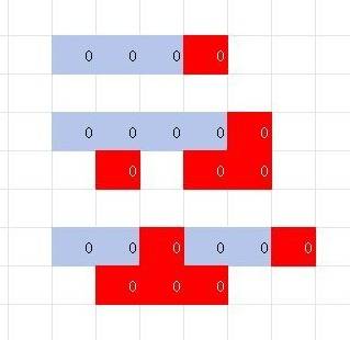 如图所示,0表示通路,红色区域为可能坍塌的区域,蓝色为稳定区域。