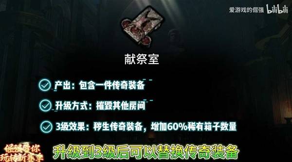 另外,房间是可以和特定房间产生羁绊,协同升级的,有些特殊房间升到3级后,也会有高价值奖励,可以极大增强你的装备,如果你装备没有需求,可以取出来作为通货带走。比如双瓦房里的双瓦宝珠,稳定价值1个神圣石,这些是我们的主要收益来源,那么升级房间就是我们的第二目标。
