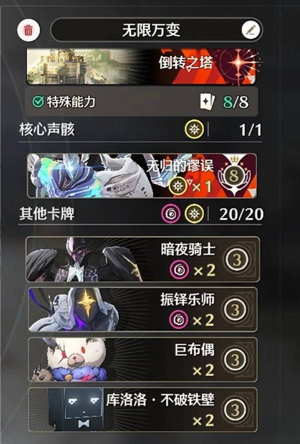 《鸣潮》3.0版本更新后,玩家可以与拉海洛地区的决斗家们进行荣耀对决了,下面请看由“泽幕”为大家带来的《鸣潮》拉海洛荣耀之丘无限万变流卡组推荐,希望可以帮助到大家。