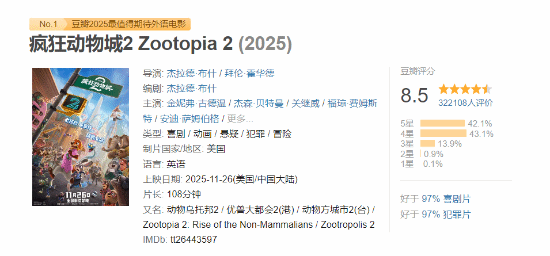 据猫眼专业版数据,《疯狂动物城2》上映6天,总票房现已突破20亿,成为中国影史第41部达到这一里程碑的电影!